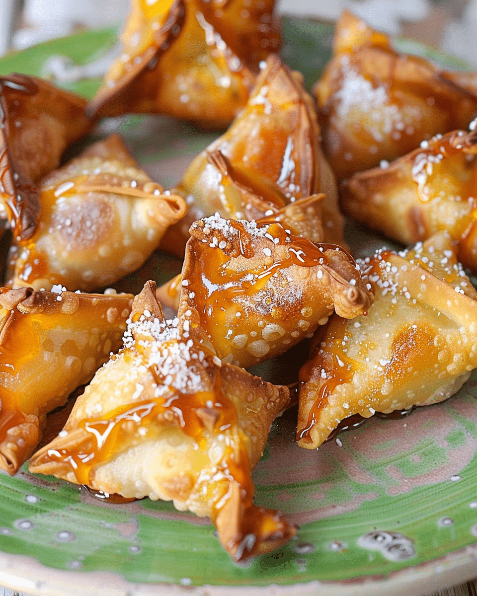 Impressive Presentation: Golden, crispy wontons topped with caramel and powdered sugar look as good as they taste.