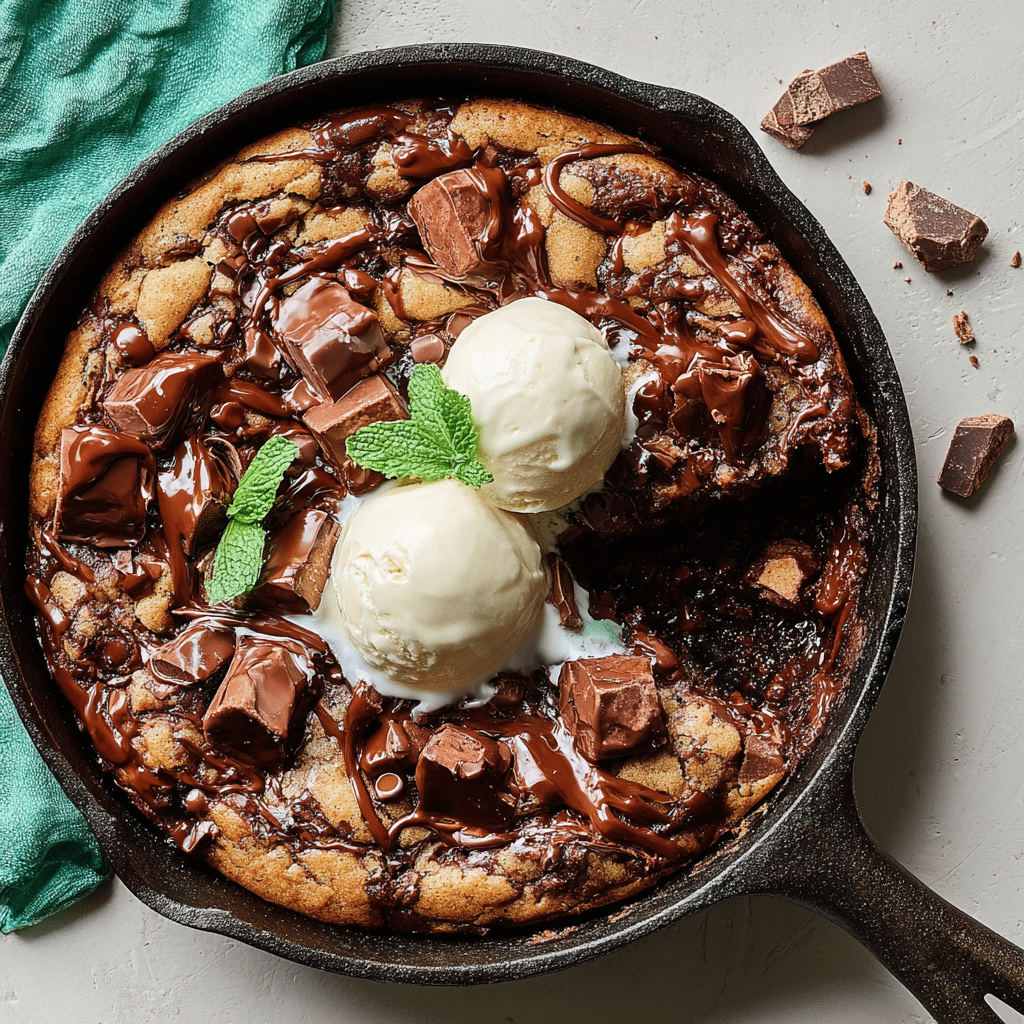The Andes Mint Skillet Cookie is a warm, indulgent dessert that combines soft chocolate chip cookie dough with smooth melted mint chocolate. It’s quick to prepare, perfect for sharing, and ideal for serving straight from the skillet with a scoop of ice cream. This dessert is guaranteed to satisfy any chocolate and mint lover.