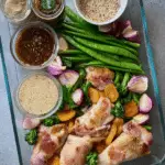 This apricot chicken tray bake is a delicious one-pan meal featuring tender roasted chicken coated in a sweet and tangy apricot glaze. Perfect for busy weeknights, this easy apricot chicken tray bake recipe combines juicy chicken and caramelized vegetables for a comforting, flavor-packed dinner.
