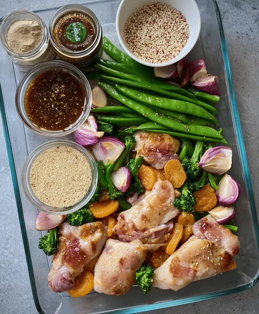 This recipe is easy to prepare and requires minimal cleanup since everything cooks in one tray. The apricot glaze adds a delicious balance of sweetness and tang, while the roasted chicken and vegetables develop rich, caramelized flavors. It’s a comforting, crowd-pleasing dish that works for any occasion.
