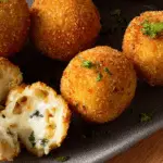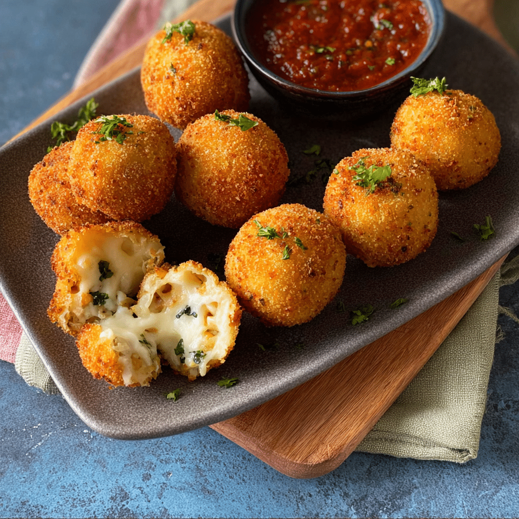 Arancini filled with mozzarella are crispy Italian rice balls made with creamy risotto, coated in golden breadcrumbs, and stuffed with gooey melted cheese. This classic arancini recipe is perfect as an appetizer, snack, or party food, delivering a crunchy exterior with a rich, cheesy center in every bite.