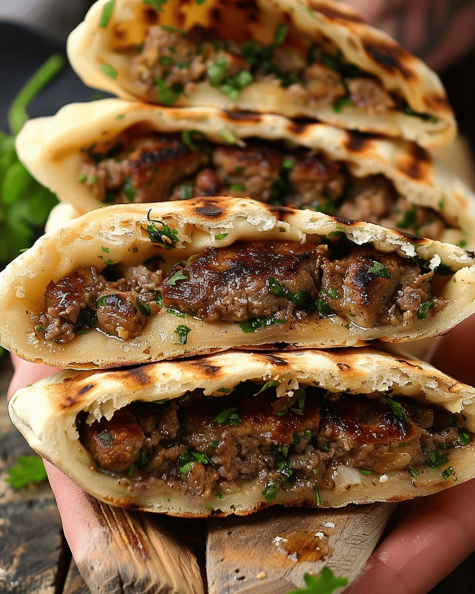 Flat style (versus pocket style): Some versions spread meat directly on flat pita and bake or grill.
