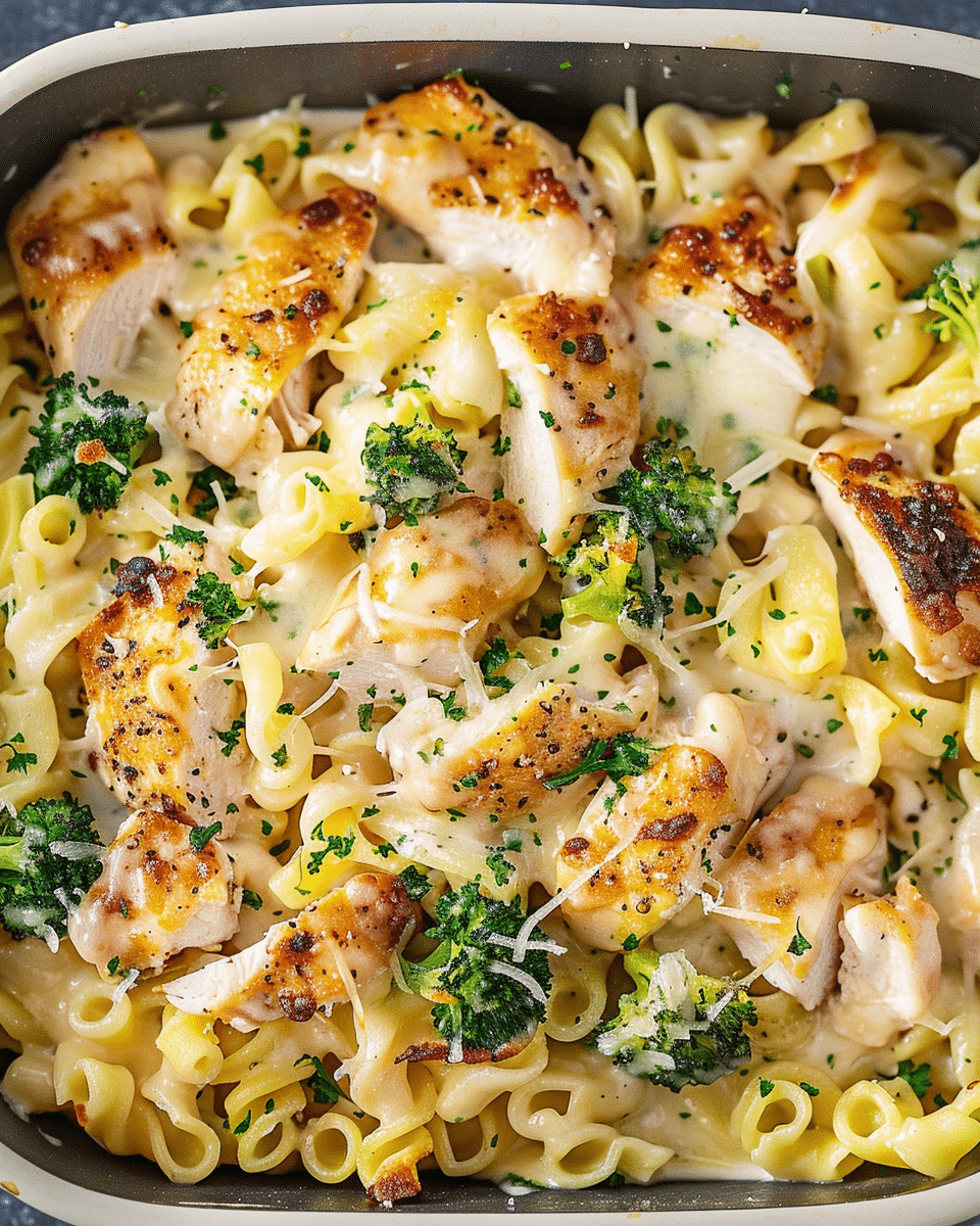 Baked Chicken Alfredo combines tender chicken, creamy Alfredo sauce, and pasta, all baked to golden perfection for a comforting, indulgent meal.