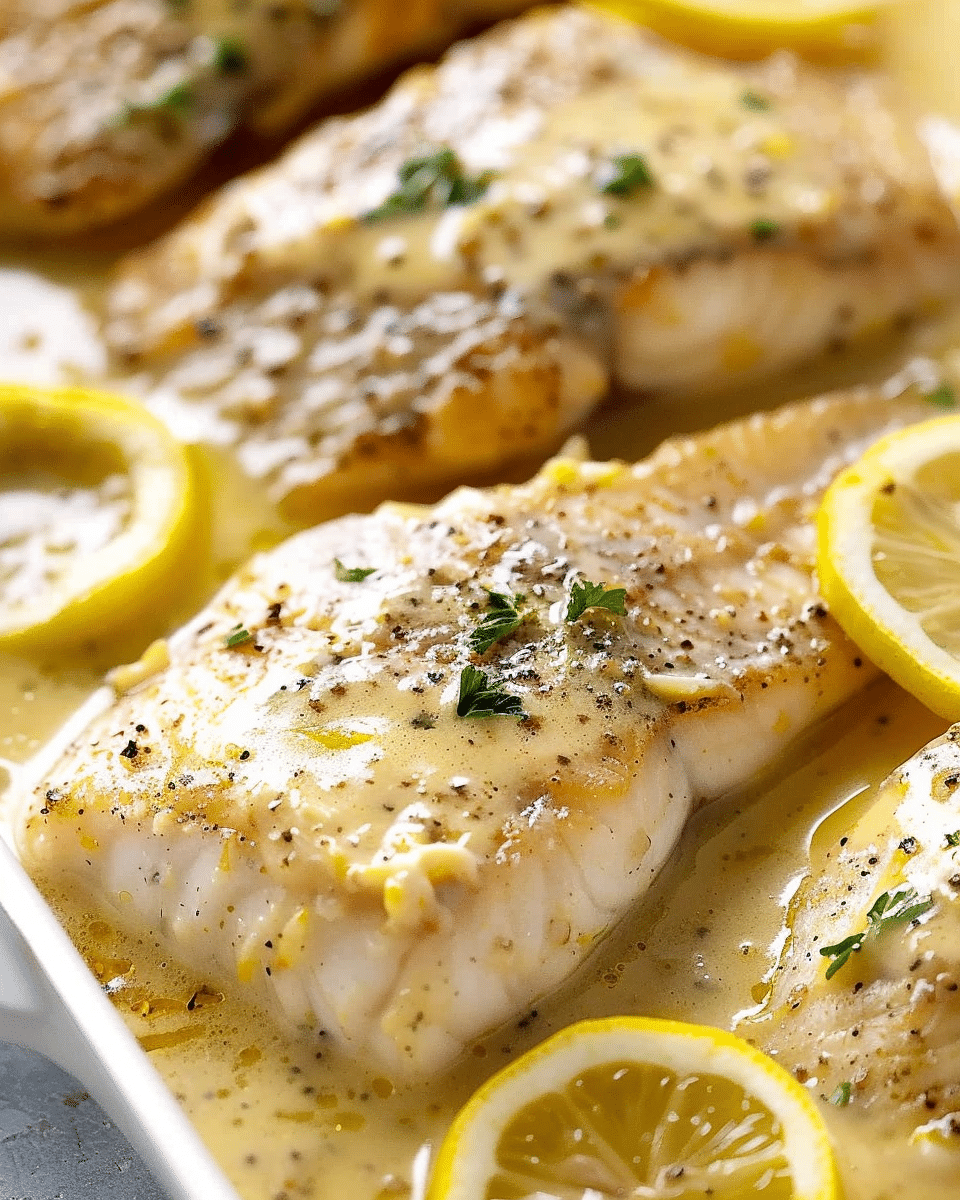 Baked Fish with Lemon Cream Sauce is a light yet indulgent dish featuring tender white fish fillets topped with a silky, tangy lemon cream sauce. It’s a simple, elegant meal perfect for weeknights or special occasions.
