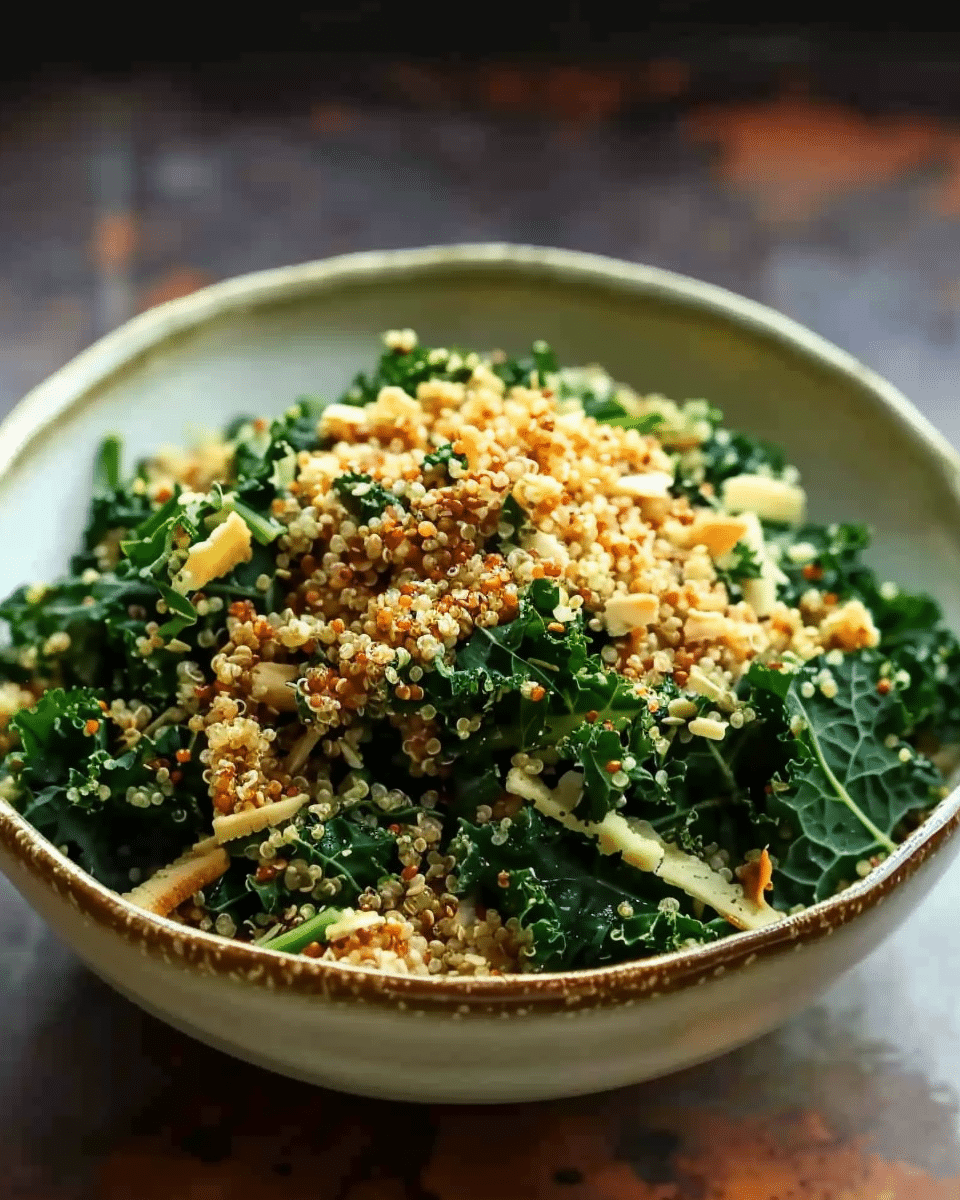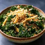 Baked Kale Salad with Crispy Quinoa is a warm, wholesome salad that features roasted kale and crunchy, oven-toasted quinoa tossed in a zesty vinaigrette. It’s hearty, flavorful, and perfect as a light main or nutritious side dish.