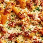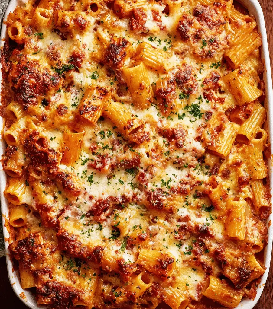 This baked rigatoni recipe is a comforting, crowd-pleasing pasta dish made with tender rigatoni, rich tomato meat sauce, creamy ricotta, and layers of melted cheese. Baked until bubbly and golden, this easy pasta bake is perfect for family dinners, meal prep, or entertaining guests.