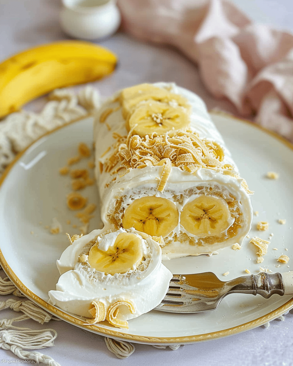 This Banana Cream Jelly Roll is a light and fluffy sponge cake filled with rich, creamy banana filling and rolled into an elegant swirl. A nostalgic and impressive dessert perfect for celebrations or special treats.