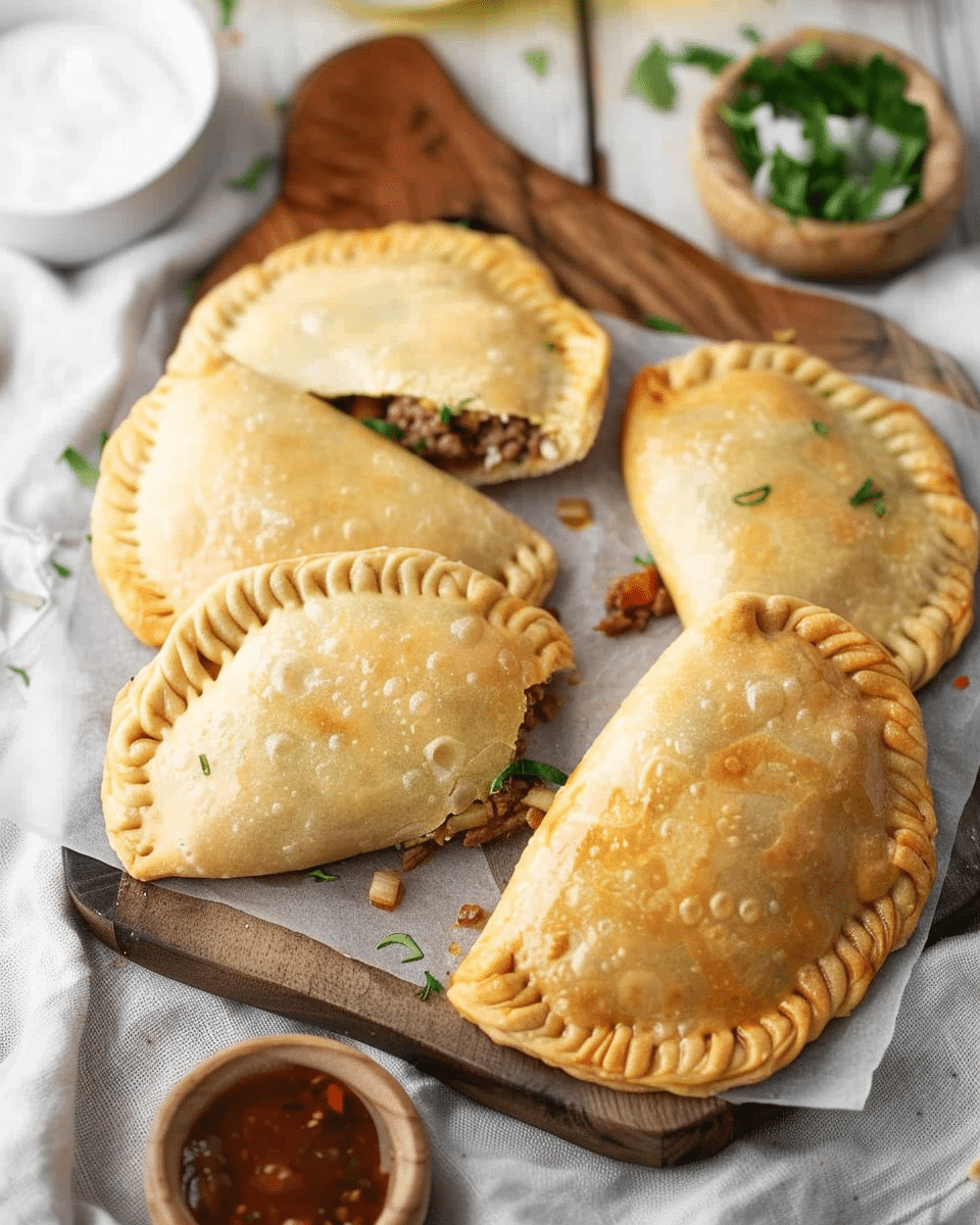 Beef Empanadas are savory hand pies filled with seasoned ground beef, sautéed vegetables, and optional mix-ins like olives or hard-boiled egg, all wrapped in a flaky pastry. Baked or fried, they’re perfect for snacks, meals, or parties.