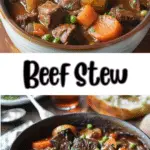 A hearty and comforting beef stew made with tender chunks of beef, vegetables, and a rich, savory broth. Perfect for chilly days or cozy family dinners.