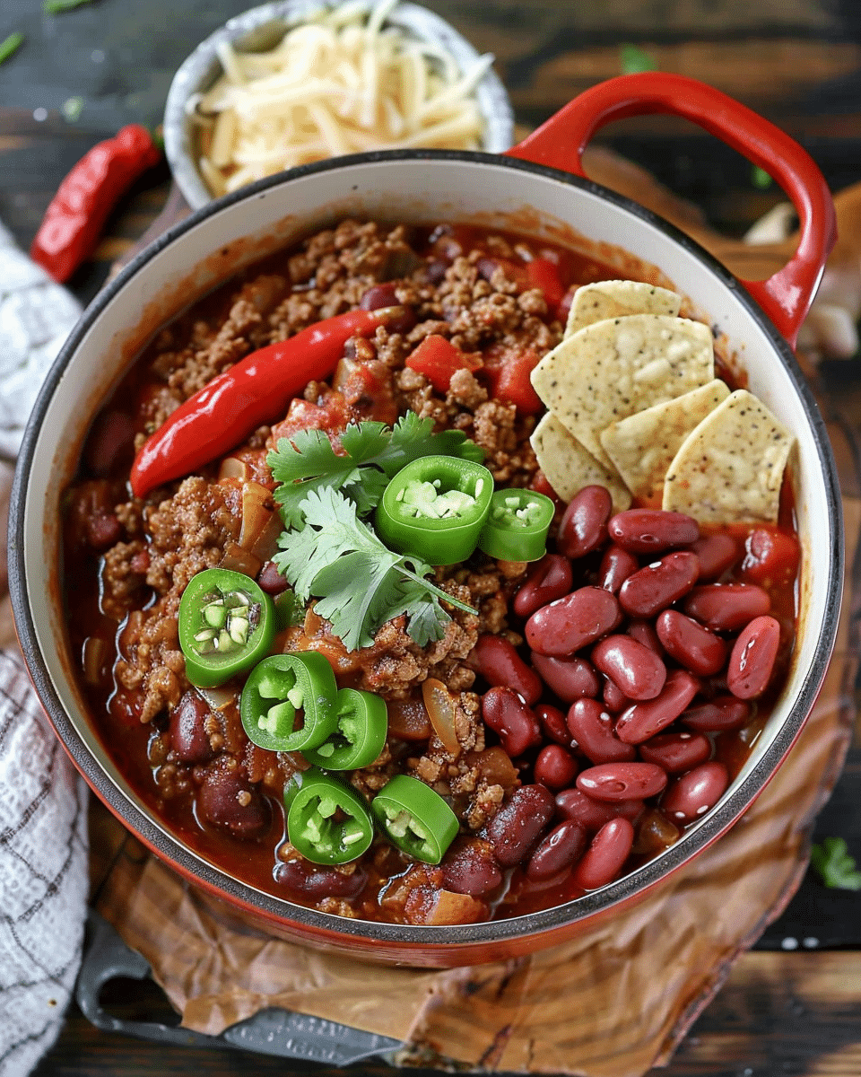This chili is incredibly easy to make, requiring simple pantry staples and minimal prep time. It’s rich and robust, thanks to a perfect balance of spices and slow simmering. You can customize it to your heat preference, and it tastes even better the next day, making it ideal for leftovers or meal prep. It’s also freezer-friendly and a guaranteed crowd-pleaser.