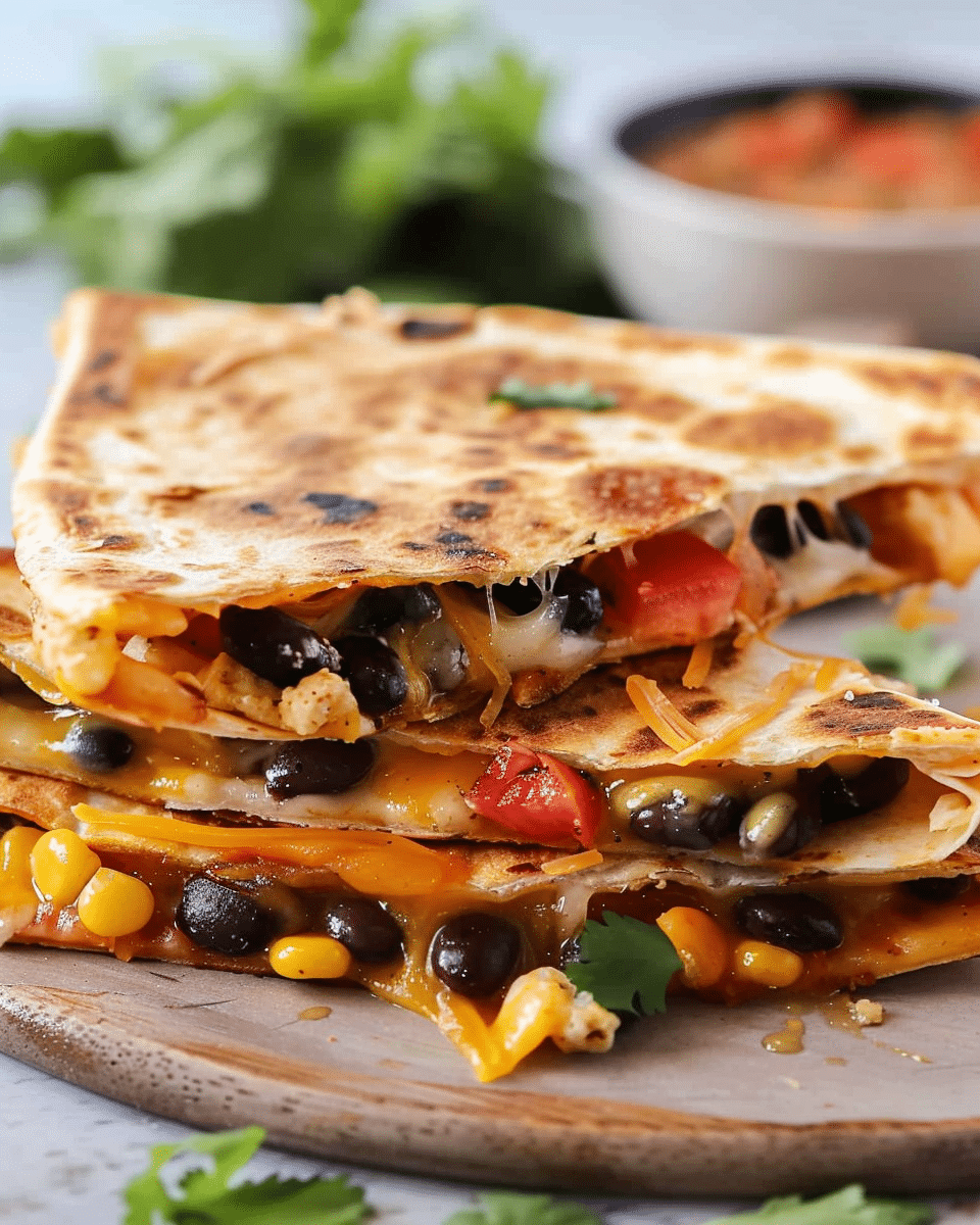 - For extra spice, add jalapeños, chipotle peppers, or hot sauce to the filling.Make it vegan with dairy-free cheese and olive oil.Bake quesadillas at 400°F for 10 minutes, flipping halfway, for a hands-off method.Don’t overfill to prevent soggy quesadillas.Freeze uncooked quesadillas wrapped in foil for up to 2 months; cook directly from frozen.