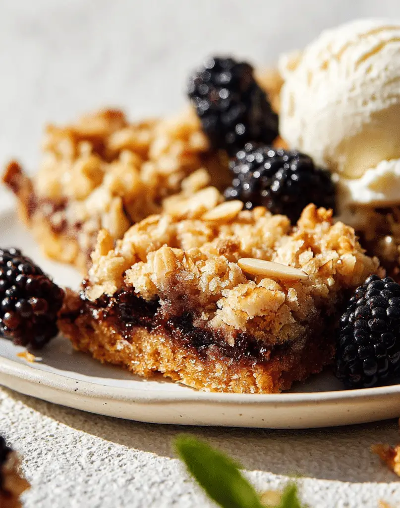 Thaw and drain frozen blackberries thoroughly before using.Add ½ teaspoon almond extract for enhanced almond flavor.Dust with powdered sugar after cooling for a decorative touch.Blackberry preserves can substitute fresh berries when needed.For clean slices, chill bars slightly before cutting.