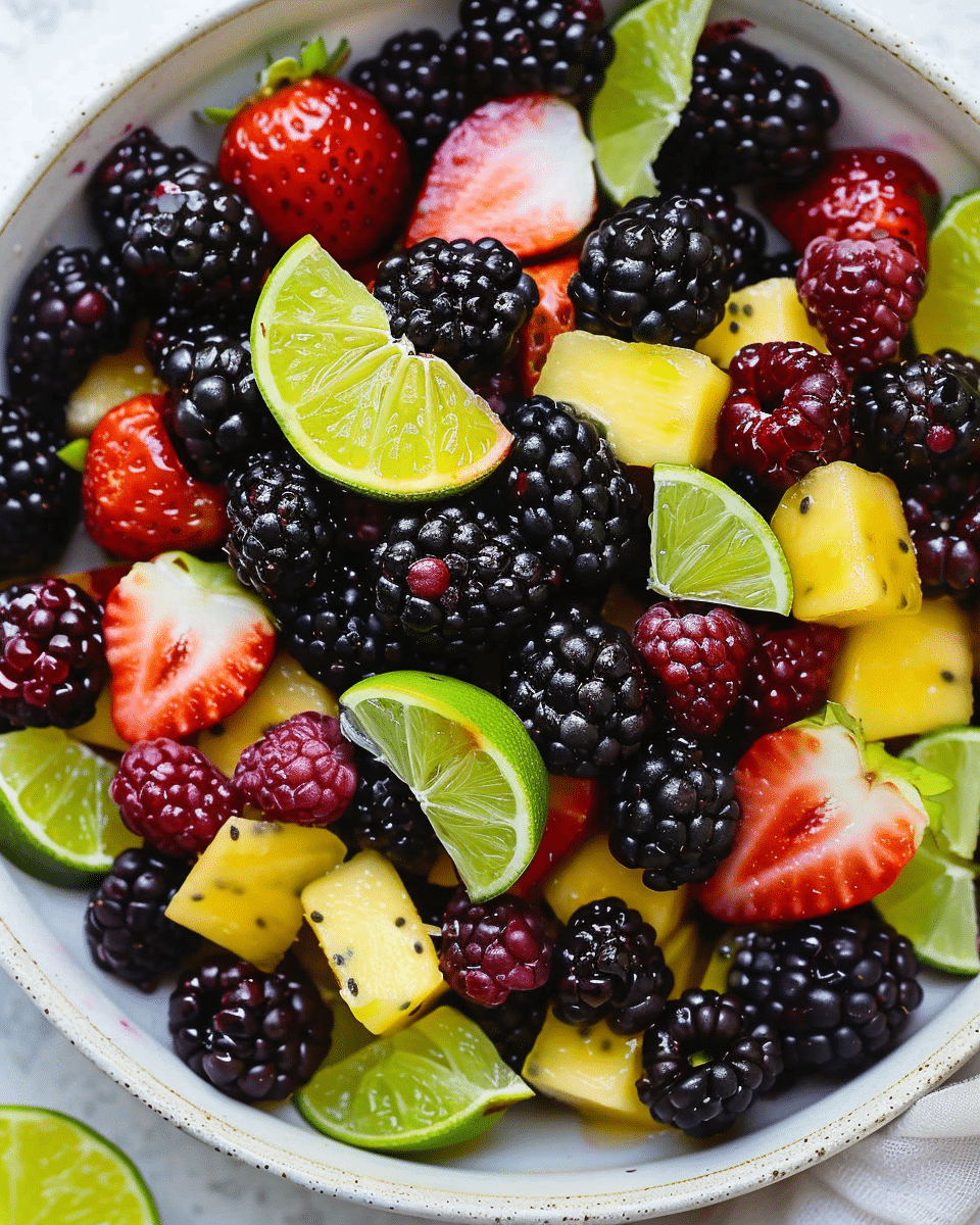 Blackberry Lime Fruit Salad is a refreshing, vibrant dish that combines juicy blackberries, sweet citrus, and tangy lime. With its balance of sweet and sour flavors, this easy-to-make fruit salad is perfect for summer gatherings, picnics, or a healthy snack. The lime dressing enhances the natural fruit flavors, making this a colorful and satisfying treat!