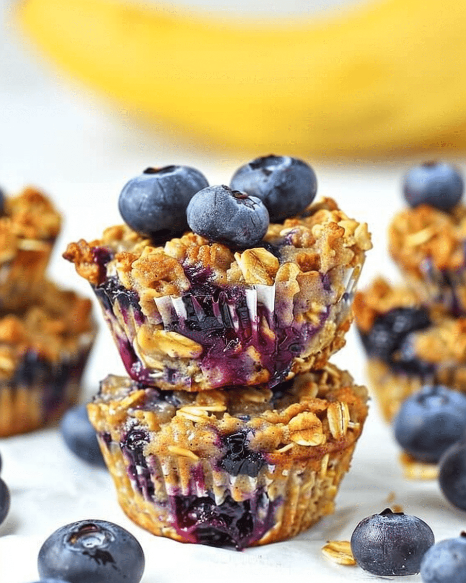 These baked oatmeal cups combine the comforting flavors of banana and blueberry with the wholesome goodness of oats. They’re soft, slightly sweet, and filled with heart-healthy ingredients. These cups are perfect for meal prep, as you can make them ahead of time and store them in the fridge or freezer for easy grab-and-go breakfasts. Plus, they’re naturally gluten-free, dairy-free, and can be made vegan by using a flax egg. Whether you’re rushing out the door or need a mid-afternoon snack, these oatmeal cups are the perfect solution!