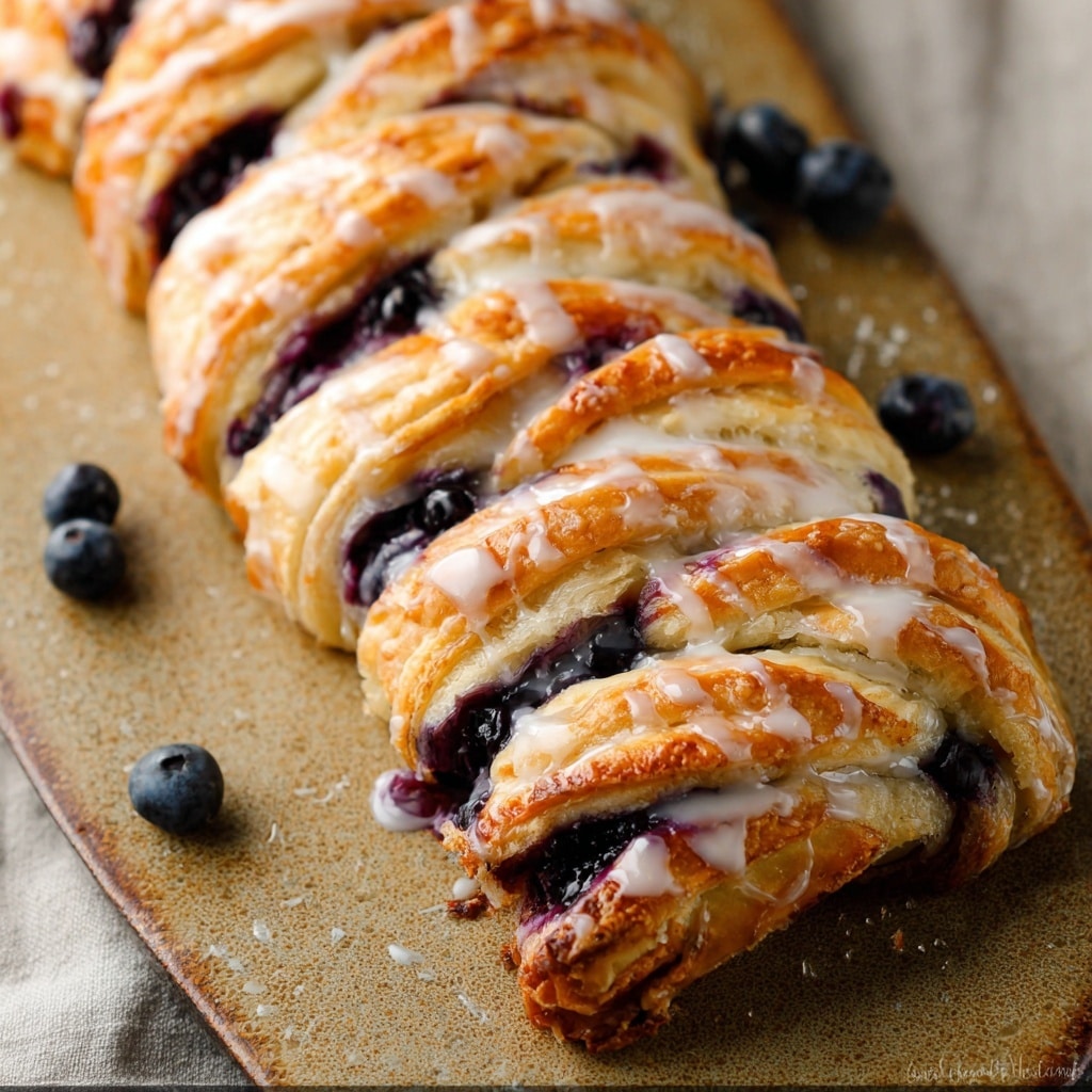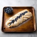 Blueberry Cream Cheese Pastry Braid is a beautifully braided puff pastry filled with creamy vanilla-scented cream cheese and sweet blueberry preserves. Baked to golden perfection, it’s perfect for brunch, dessert, or a special breakfast treat.