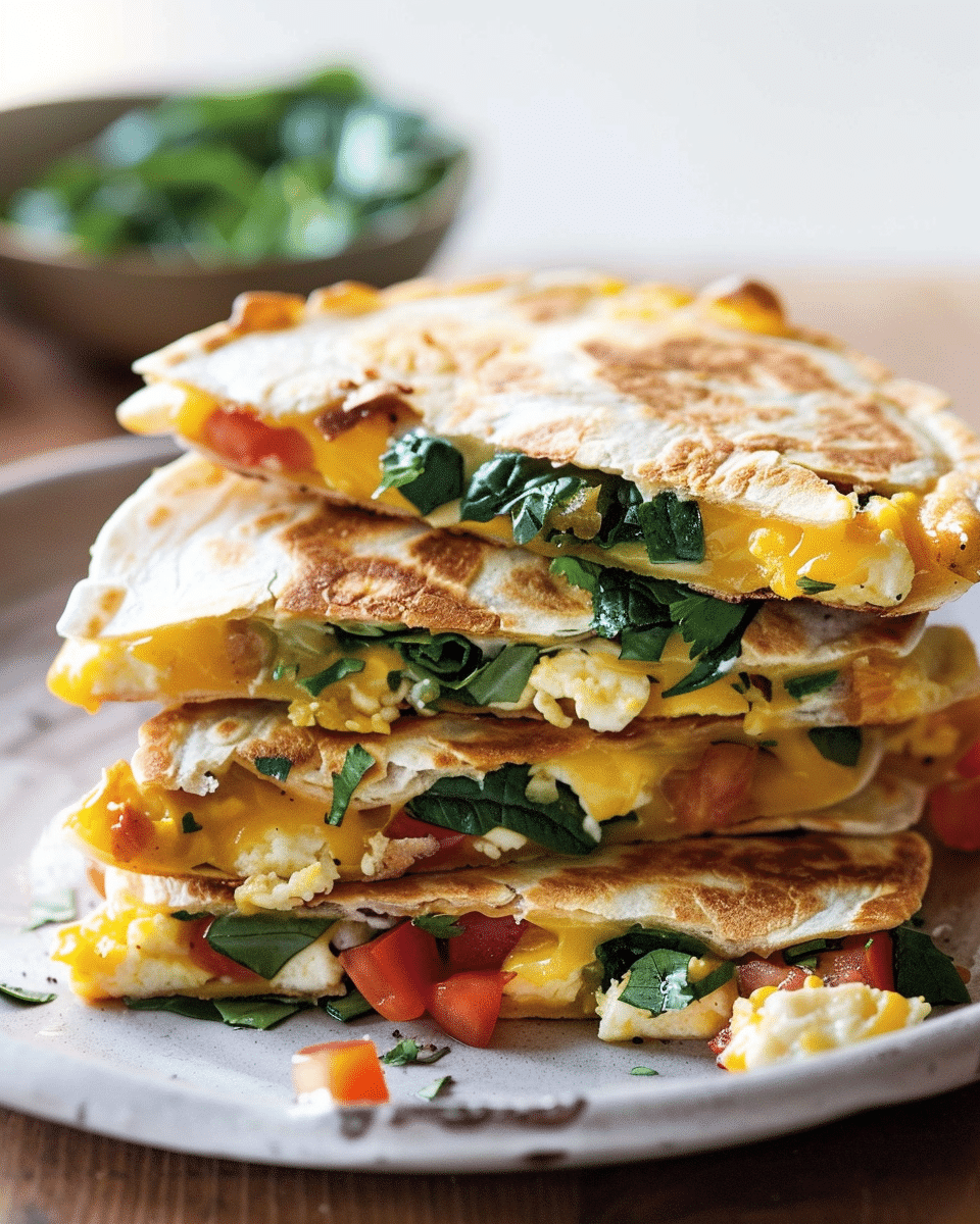 Breakfast quesadillas are crispy, golden tortillas filled with fluffy scrambled eggs, melted cheese, and your favorite breakfast fillings. They’re quick, customizable, and perfect for a hearty morning meal at home or on the go.