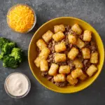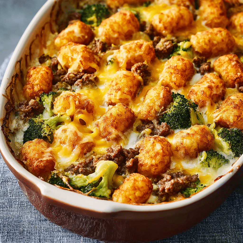 Broccoli, beef, and tater tot hotdish is a cozy, satisfying casserole that’s easy to make and full of comforting flavors. With its creamy base and crispy topping, it’s a reliable recipe that’s perfect for family dinners or meal prepping.
