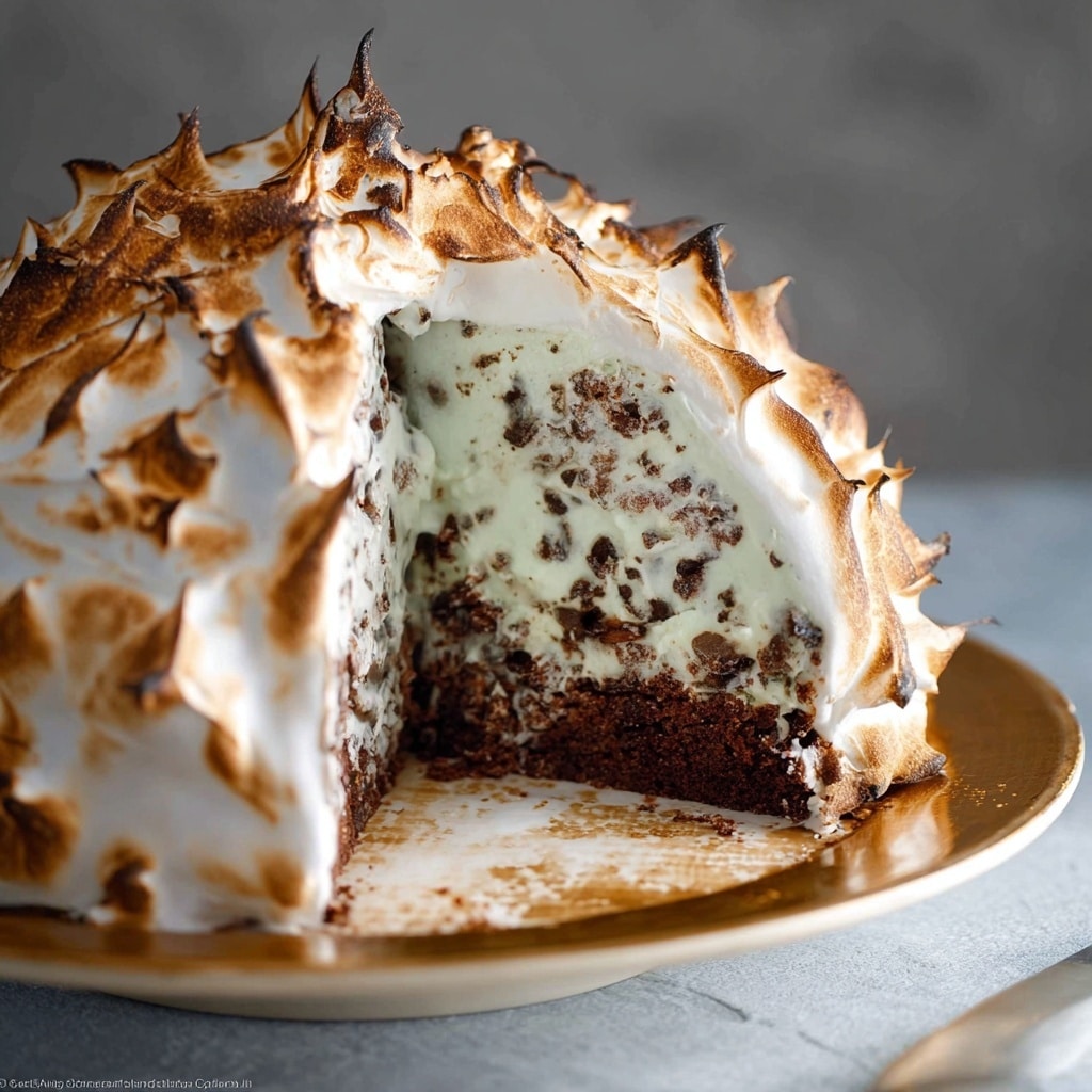 Brownie Baked Alaska is a stunning dessert featuring a fudgy brownie base, a dome of ice cream, and a toasted meringue shell. It combines hot and cold, soft and crisp, for an unforgettable treat that’s perfect for celebrations.