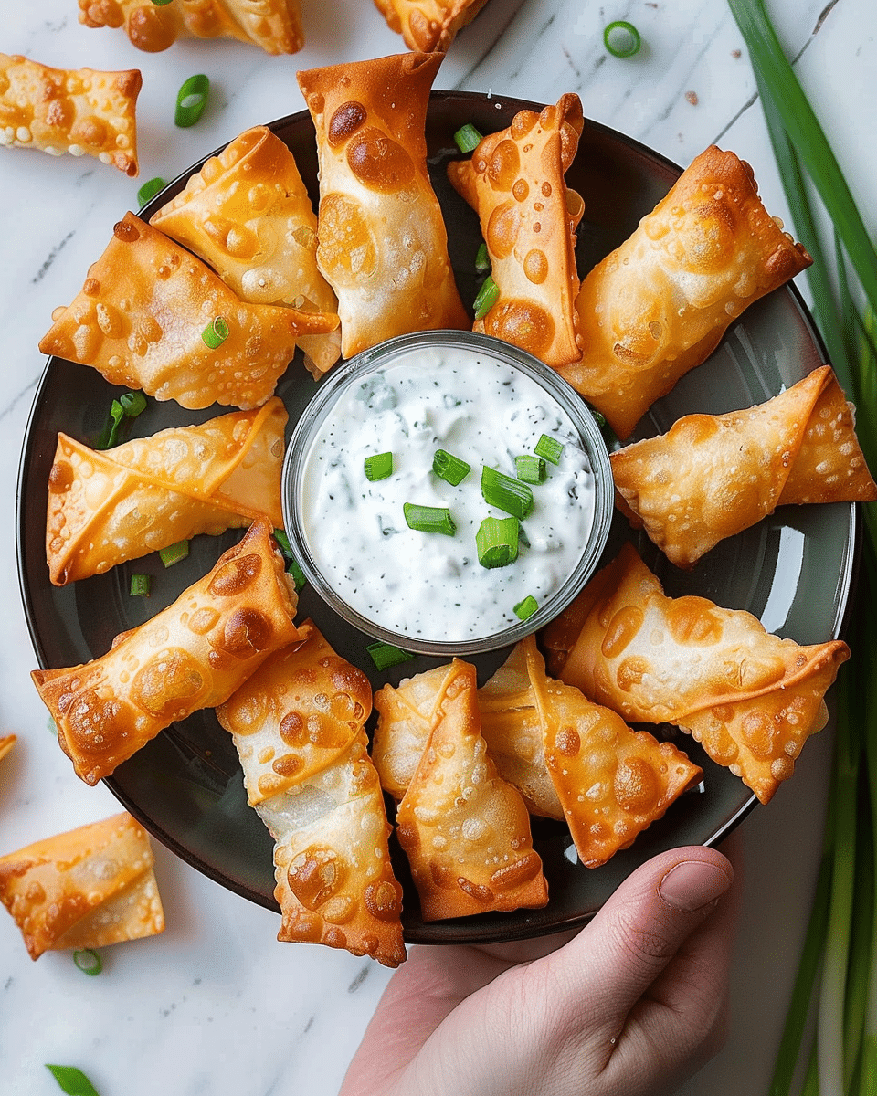 Buffalo Chicken Wontons with Yogurt Blue Cheese Dip are a crowd-pleasing appetizer that combines crispy, cheesy, and spicy flavors in one bite. The lightened-up blue cheese dip adds cool creaminess, making this recipe a delicious and balanced snack for parties, game days, or anytime you’re craving something bold and fun