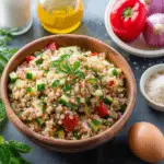 Bulgur salad is a refreshing and wholesome Mediterranean-inspired dish made with tender bulgur wheat, fresh vegetables, herbs, and a lemon-olive oil dressing. It’s perfect as a light meal or hearty side dish.