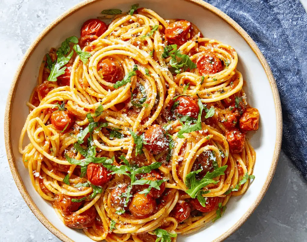 No need to cut the tomatoes—they’ll burst naturally during cooking.Customize with greens, protein, or alternative cheeses based on preference.This dish is best served fresh, but leftovers can be stored for up to 3 days.For added richness, stir in a splash of cream or mascarpone at the end.Great with any pasta shape, including gluten-free and whole wheat varieties.