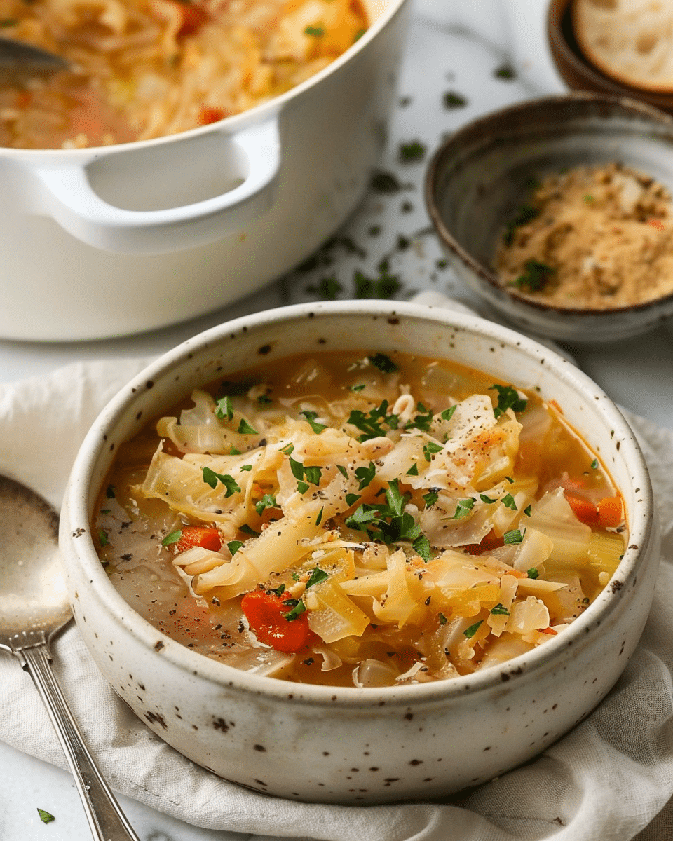 Cabbage Soup is a comforting, healthy, and flavorful dish that’s perfect for a cozy meal. It’s easy to make, low in calories, and packed with nutrients, making it a great addition to any diet. Whether you enjoy it as a light lunch, a starter, or a side dish, this soup is satisfying and versatile. With the ability to customize it to your tastes, this Cabbage Soup will become a go-to favorite in your kitchen. Enjoy it hot, fresh, and full of wholesome flavors!