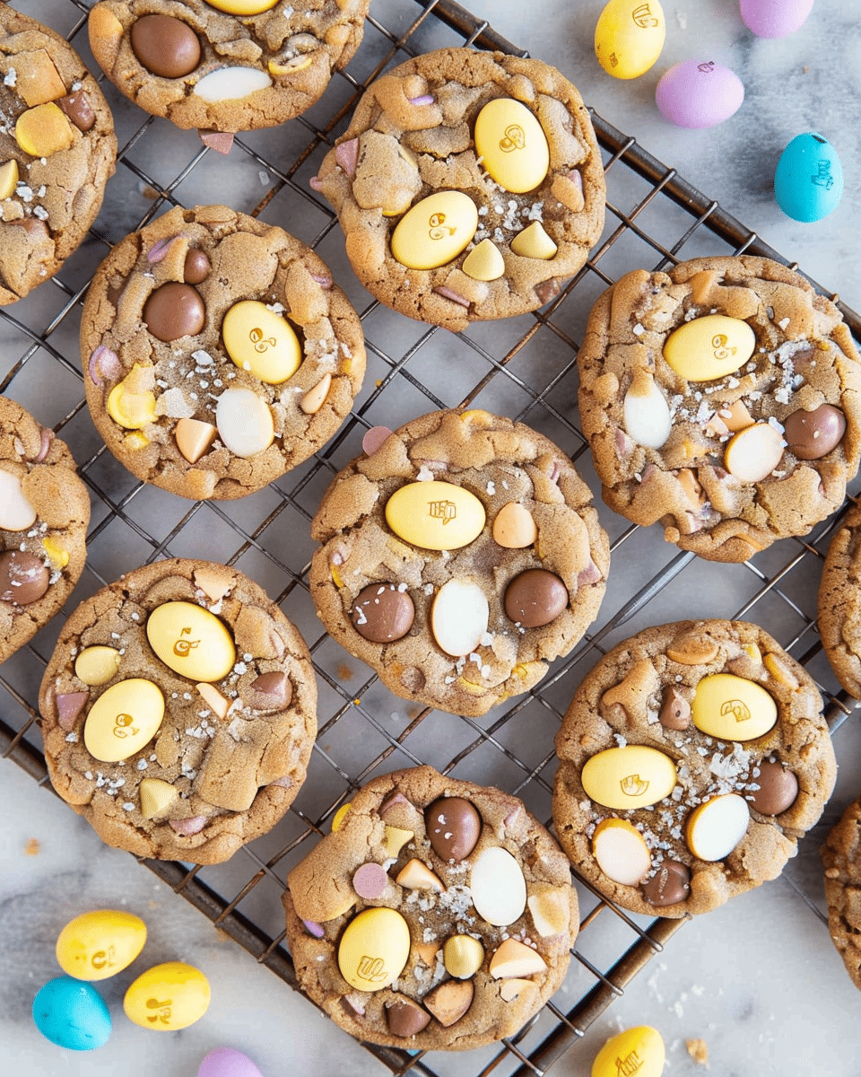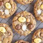 Cadbury Egg Cookies are soft, chewy Easter cookies packed with crushed Cadbury Mini Eggs and chocolate chips. With a sweet, festive flair and classic cookie texture, they’re perfect for springtime celebrations or using up Easter candy.