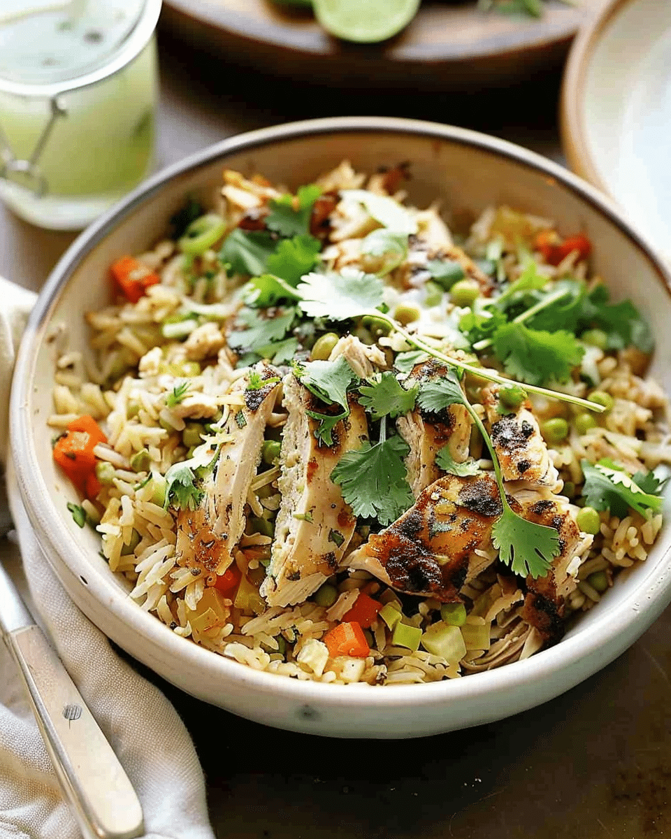 For extra flavor, use green salsa or diced green chilies in the chicken mixture.Thighs stay juicier than breasts but both work well.Rice can be made ahead and reheated with a splash of water or broth.Add black beans, corn, or toppings like avocado and cheese for burrito bowls.To freeze, cool chicken and rice completely before storing in airtight containers.