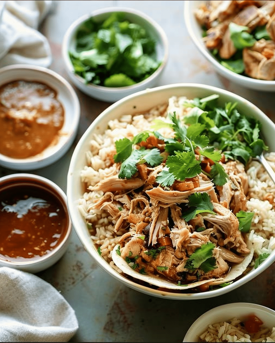 Cafe Rio Slow Cooker Chicken and Cilantro Rice is a flavorful, easy-to-make meal featuring tender shredded chicken cooked in zesty seasonings and paired with fresh, herb-infused cilantro lime rice. It’s perfect for tacos, burrito bowls, salads, or meal prep.