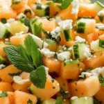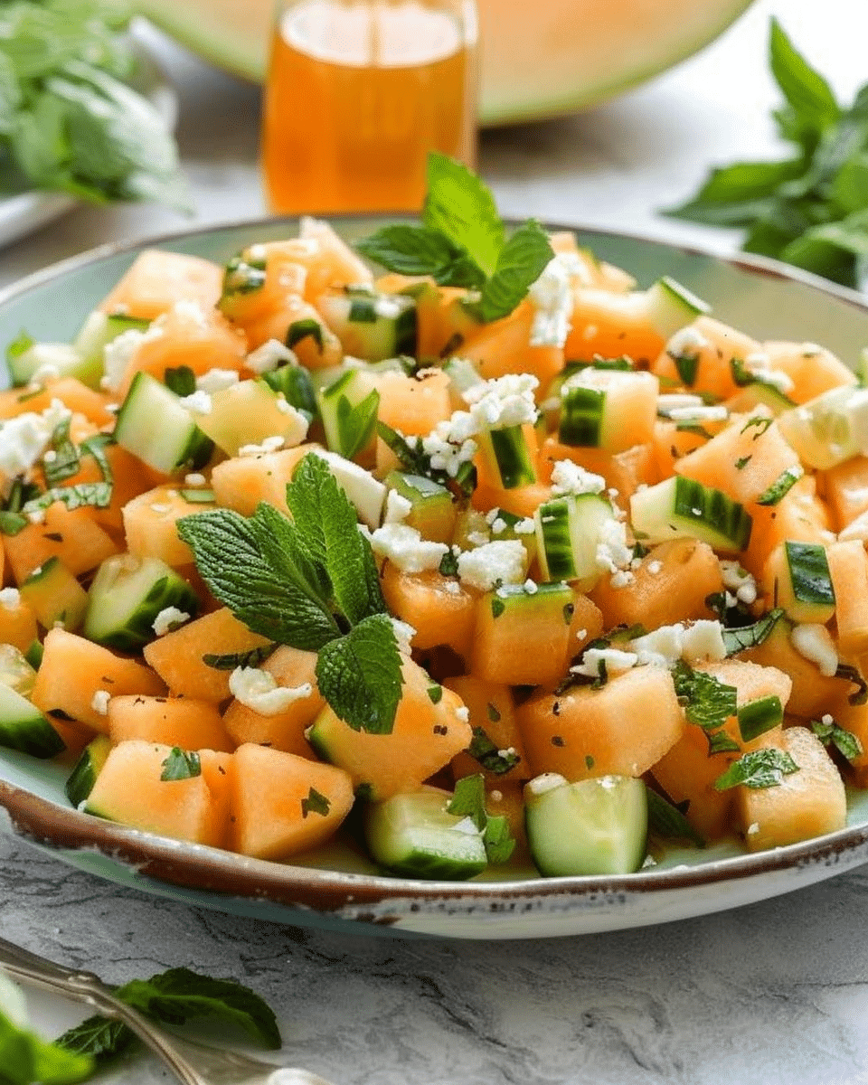 Cantaloupe Cucumber Mint Salad is a refreshing, hydrating, and vibrant dish combining sweet cantaloupe, crisp cucumber, and fresh mint, perfect for summer meals or snacks.