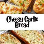Cheesy garlic bread is buttery, crispy on the edges, soft in the center, and topped with rich garlic flavor and gooey melted cheese. It’s the perfect side dish for pasta, soups, or a satisfying snack on its own.