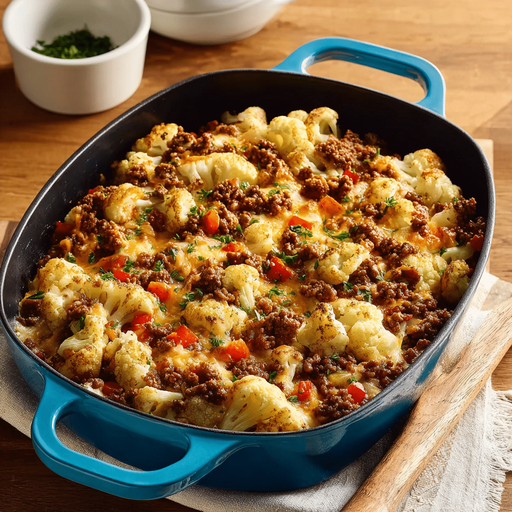 This recipe delivers all the cozy flavors of a classic casserole without the heaviness of pasta or rice. It’s easy to prepare, packed with protein and vegetables, and perfect for weeknight dinners. The cauliflower absorbs the rich flavors beautifully while staying tender, and the melted cheese on top adds that irresistible finishing touch. It’s also great for meal prep and reheats wonderfully.