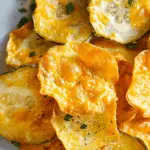 Cheesy Pickle Chips are tangy dill pickle slices baked or air-fried with melted cheese until golden and crispy. A quick, low-carb, and keto-friendly snack or appetizer that’s perfect for parties or game day.
