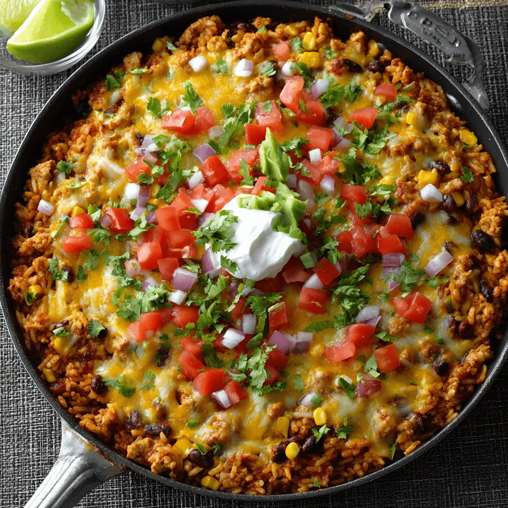 You can substitute ground beef or chicken for the turkey depending on your preference. Add bell peppers or jalapeños for extra flavor and heat. Use brown rice or cauliflower rice for a different texture or a lighter option. You can also top it with sour cream, avocado, or crushed tortilla chips for added crunch.
