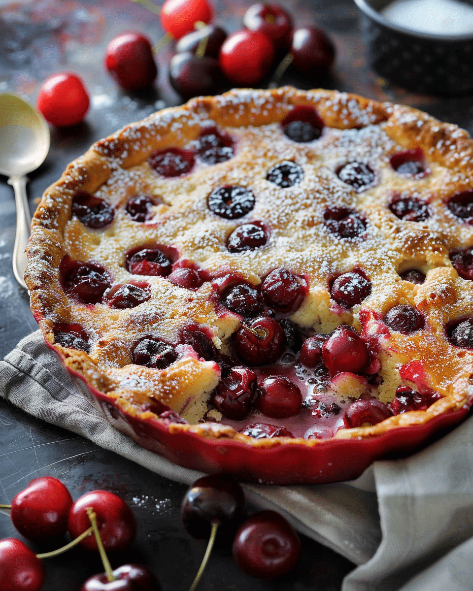 Cherry Clafoutis is a classic French dessert made with fresh cherries baked in a custard-like batter until golden and puffed. Lightly sweet and beautifully rustic, this dish is typically served warm with a dusting of powdered sugar. Its creamy texture and juicy cherries make it a delightful treat that feels fancy but is surprisingly easy to make