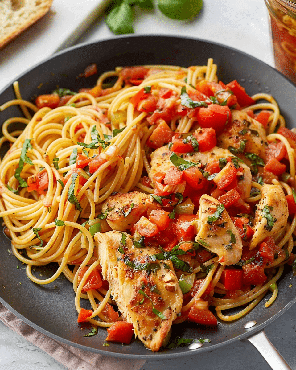 Chicken Bruschetta Pasta is a bright, satisfying dish that combines all the best elements of a bruschetta appetizer with the comfort of a pasta dinner. It’s quick to prepare, full of fresh ingredients, and flexible enough to adapt to your taste or dietary needs. Whether served warm or cold, it’s a flavorful, wholesome meal you’ll want to make again and again.