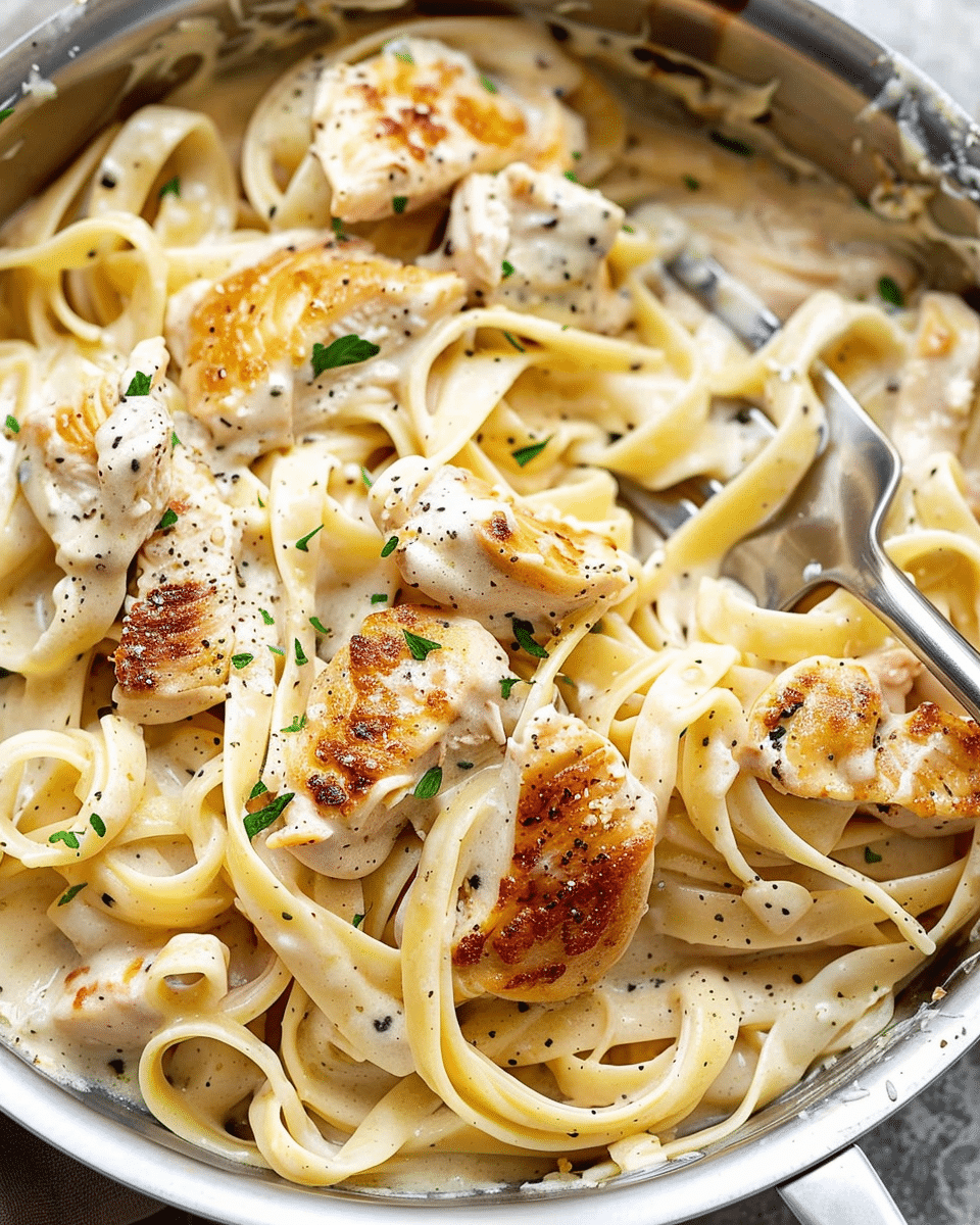 Chicken Fettuccine Alfredo is a creamy, indulgent pasta dish made with tender fettuccine coated in a rich Parmesan cream sauce and topped with juicy chicken. A comforting Italian-American classic, it’s perfect for weeknight dinners or special occasions.