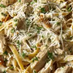 Chicken Fettuccine is a creamy and comforting pasta dish made with tender chicken, perfectly cooked fettuccine, and a rich parmesan cream sauce. This easy chicken fettuccine recipe is perfect for quick weeknight dinners or indulgent family meals, delivering restaurant-quality flavor at home.
