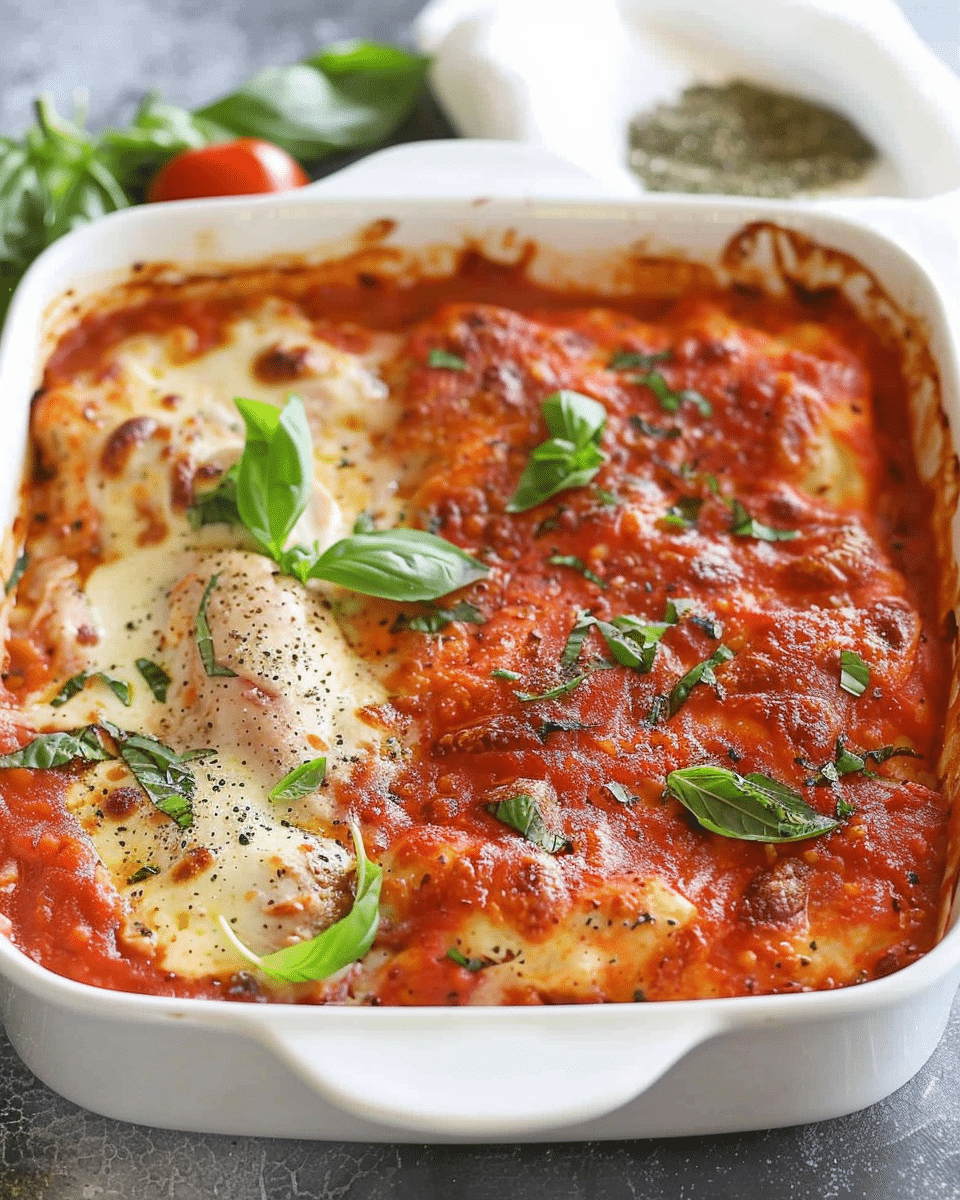 You can use store-bought or homemade marinara sauce.For extra flavor, sear the chicken briefly in a pan before baking.Serve with pasta, rice, or a side salad.