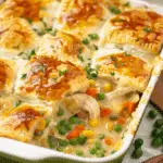 This casserole takes everything you love about chicken pot pie—creamy filling, savory chicken, and flaky topping—and simplifies it into a one-pan meal that’s both hearty and satisfying. It’s a great way to use up leftover chicken or rotisserie chicken, and the topping options are flexible: biscuits, puff pastry, or even crescent rolls. Plus, it’s freezer-friendly and makes excellent leftovers.