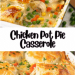 Chicken Pot Pie Casserole is a warm, satisfying dish that turns a classic comfort food into a practical, easy-to-make dinner. With its creamy filling, tender chicken, and flaky topping, it’s sure to become a regular in your meal rotation. Whether you serve it for Sunday dinner or a weeknight family meal, this cozy casserole delivers all the flavor of a homemade pot pie with half the effort.