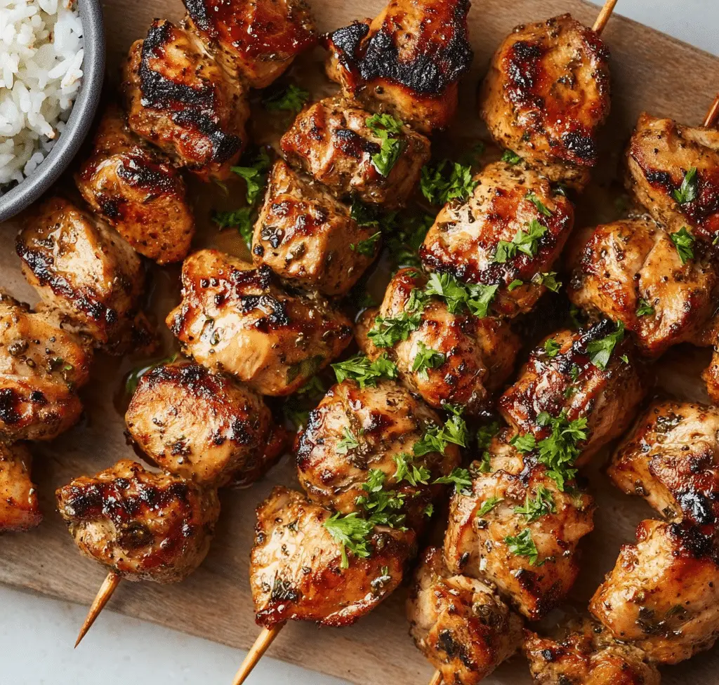 Chicken thighs tend to stay juicier than chicken breasts when grilled.Marinating for 1–2 hours will enhance the flavor even more.These skewers can also be cooked in the oven at 400°F (200°C) for 18–20 minutes.Serve with tzatziki, garlic sauce, or barbecue sauce for extra flavor.