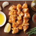 These Chicken Skewers are juicy, flavorful, and marinated with garlic, lemon, and warm spices before being grilled to perfection. Perfect for barbecues, quick dinners, or meal prep, these easy grilled chicken skewers pair well with vegetables, rice, salads, or your favorite dipping sauces.