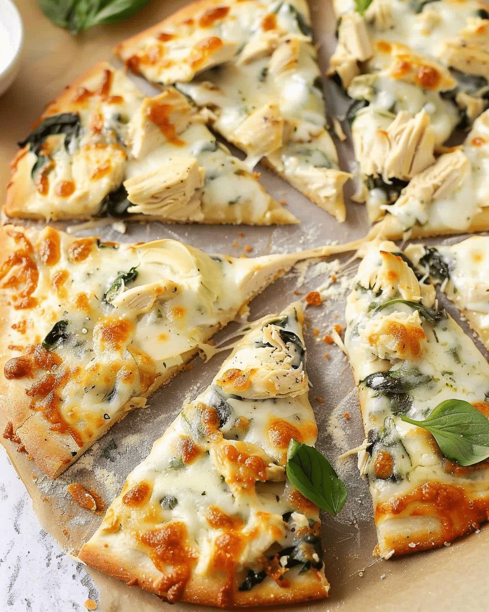 Chicken Spinach Artichoke Pizza brings the creamy richness of spinach artichoke dip to a crispy, cheesy pizza. Topped with tender chicken, sautéed spinach, artichokes, and a garlicky white sauce, it’s a hearty, satisfying meal perfect for weeknights or parties.