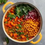 Yes, you can freeze the chickpea curry portion for up to 2 months. Thaw in the fridge overnight before reheating. It’s best to freeze rice and vegetables separately for optimal texture.