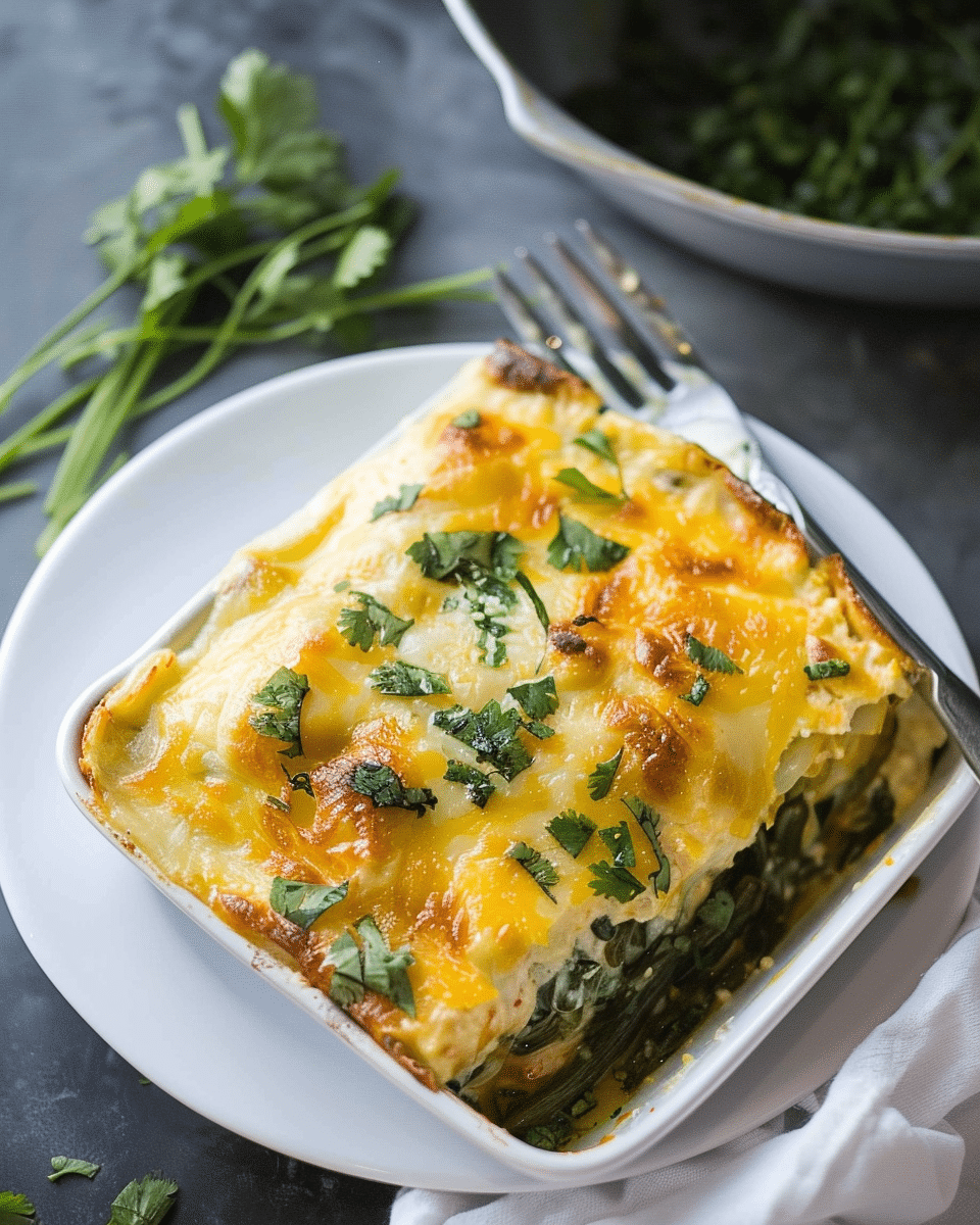 Chile Relleno Casserole is a comforting and flavorful dish that combines smoky roasted chiles, creamy cheese, and a savory egg custard into one satisfying casserole. It’s an easy, hands-off way to enjoy the flavors of chile rellenos without the work of frying and stuffing each pepper. Whether you’re serving it for breakfast, lunch, or dinner, this casserole is sure to be a hit with everyone. Make it ahead for a stress-free meal, or serve it fresh from the oven for a warm, flavorful treat!