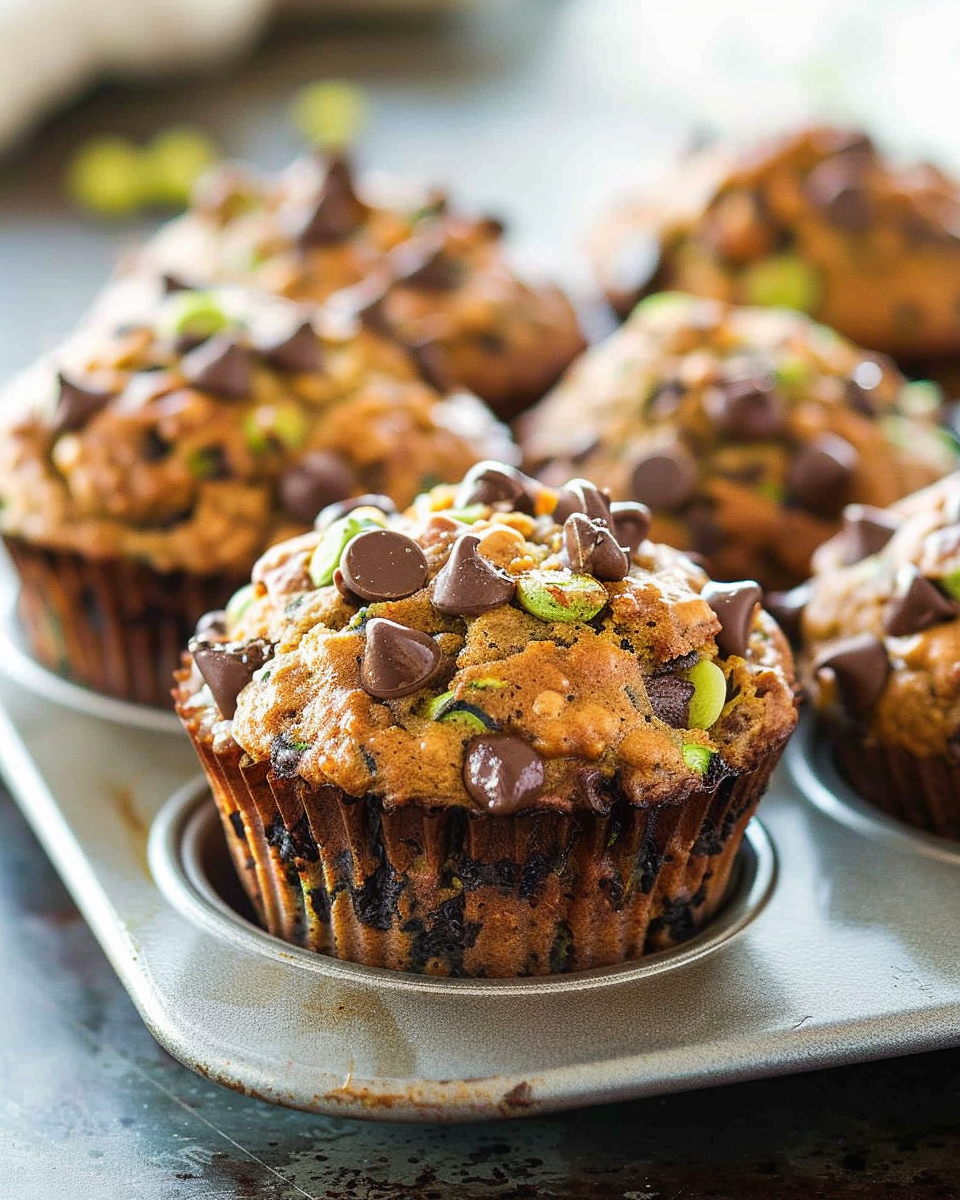 These chocolate chip zucchini muffins are moist, tender, and filled with rich chocolate flavor. The zucchini adds natural moisture and blends perfectly into the batter, making them a delicious treat for breakfast, snacks, or dessert.