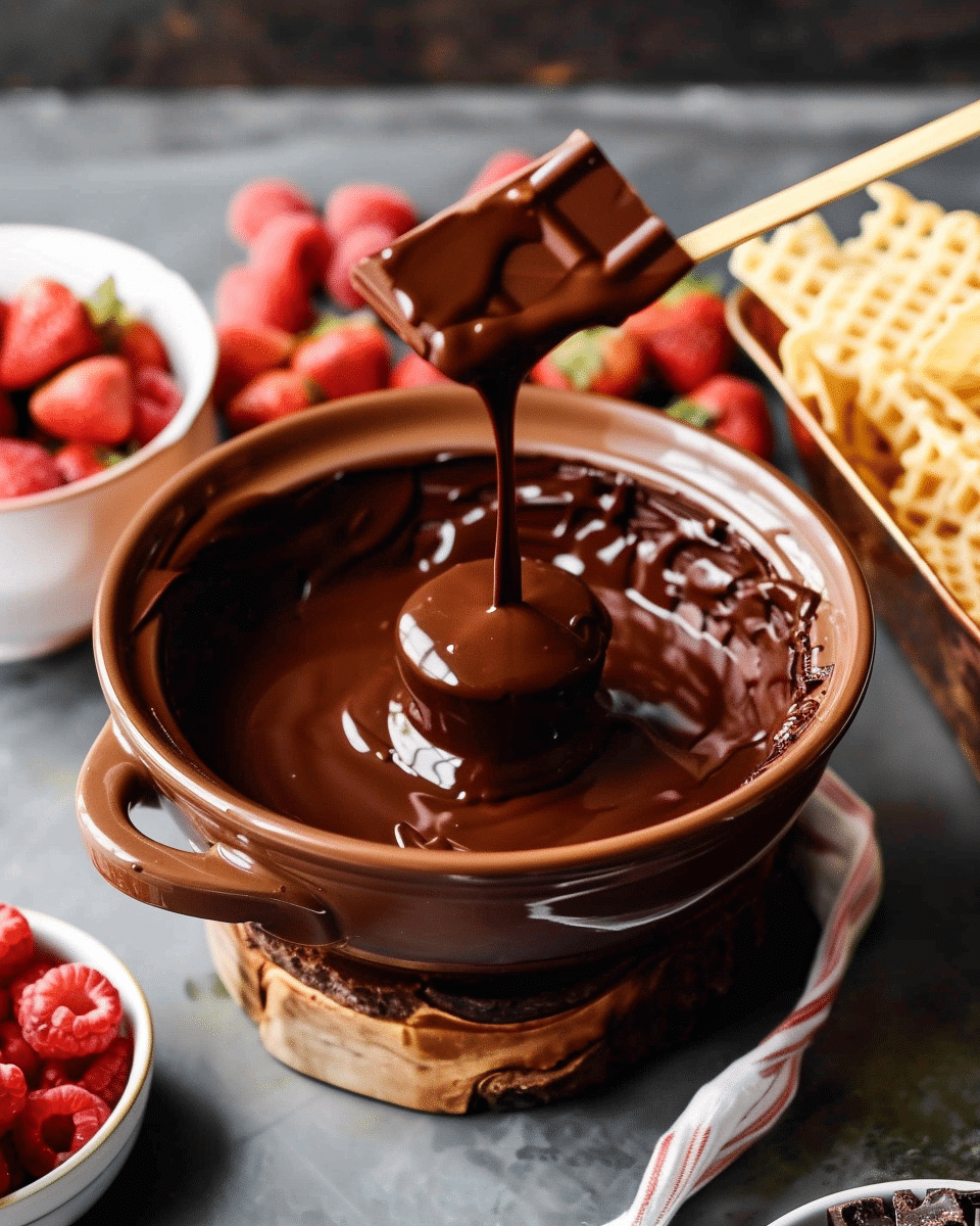 Chocolate Fondue is a rich, velvety dessert made by melting high-quality chocolate with cream and optional flavorings. Perfect for dipping fruits, cookies, and more, it’s a fun and interactive treat ideal for date nights, parties, or family gatherings.
