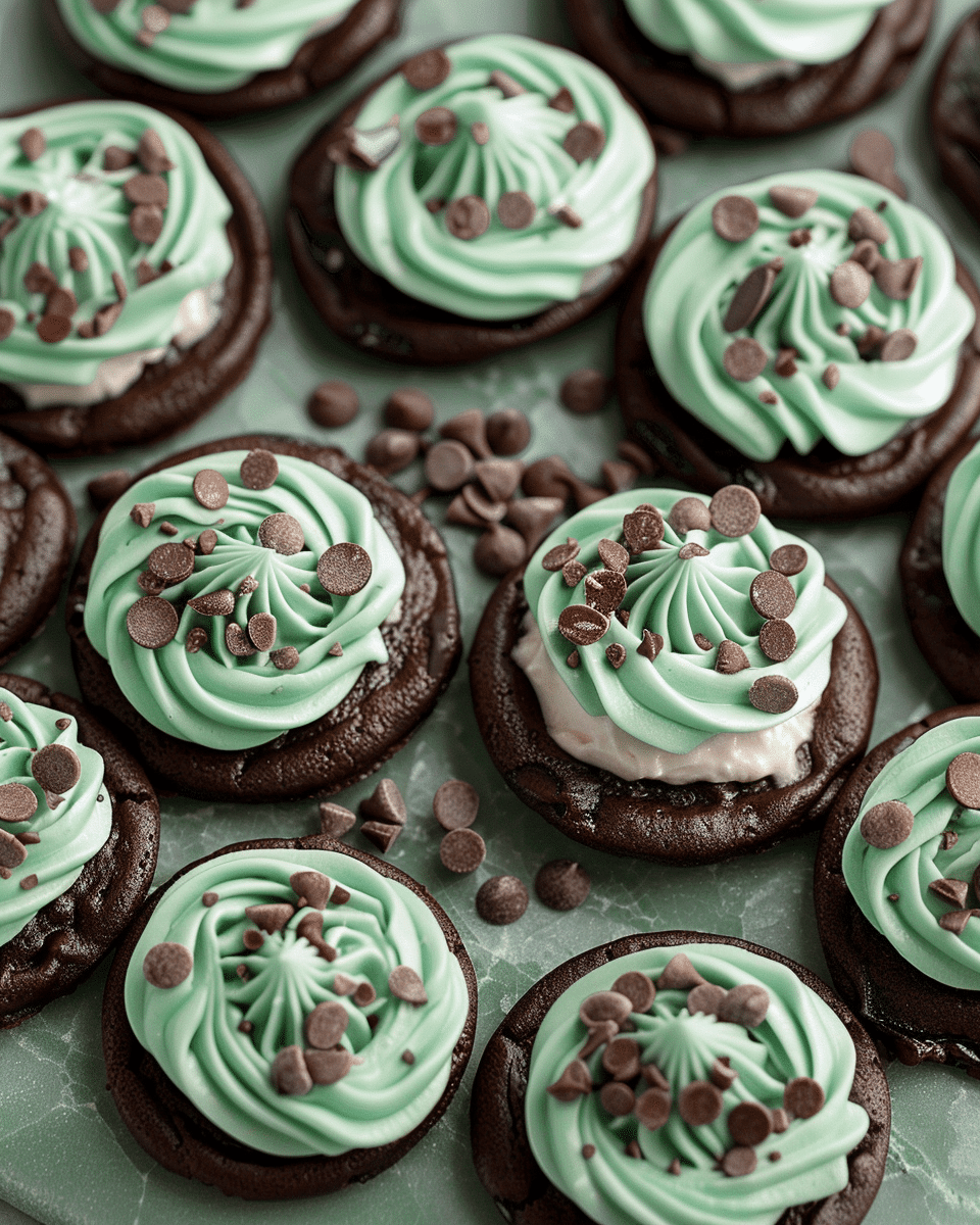They have a soft, brownie-like chocolate flavor with a creamy, cool mint topping—rich and refreshing.