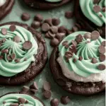 Pipe or spoon the mint frosting onto the center of each cookie.